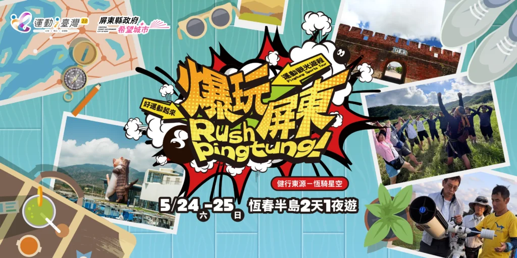 「產地到餐桌」體驗(依上車地點分配)、屏菸1936文化基地、勝利星村文化創意園區、螢光 Zumba® 夜派對。