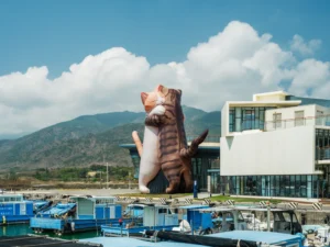 看海美術館位於屏東車城的海口港旁,原為老舊候船室,經過活化改造,搖身成為結合海景與藝術的特色美術館。
